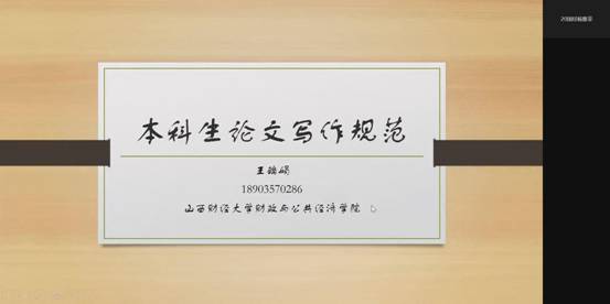 本次系列讲座活动让我们既熟悉了学年论文的基本要求,也初步学习了学年论文的写作方法。三场讲座中,国民经济管理专业大一、大二、大三的同学均有参加。每次讲座都安排了互动环节,主讲老师们及时解答了同学们提出的问题。通过本次系列讲座,同学们的学年论文写作水平一定能得到较大的提高!