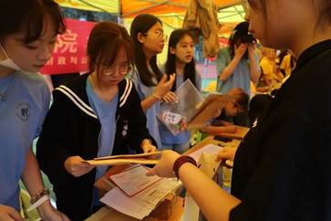早上七点,迎新志愿者身着蓝色志愿服,热心提供服务,帮助搬运行李,给新生和家长家人般的关怀与帮助,传递财院的爱与温暖。