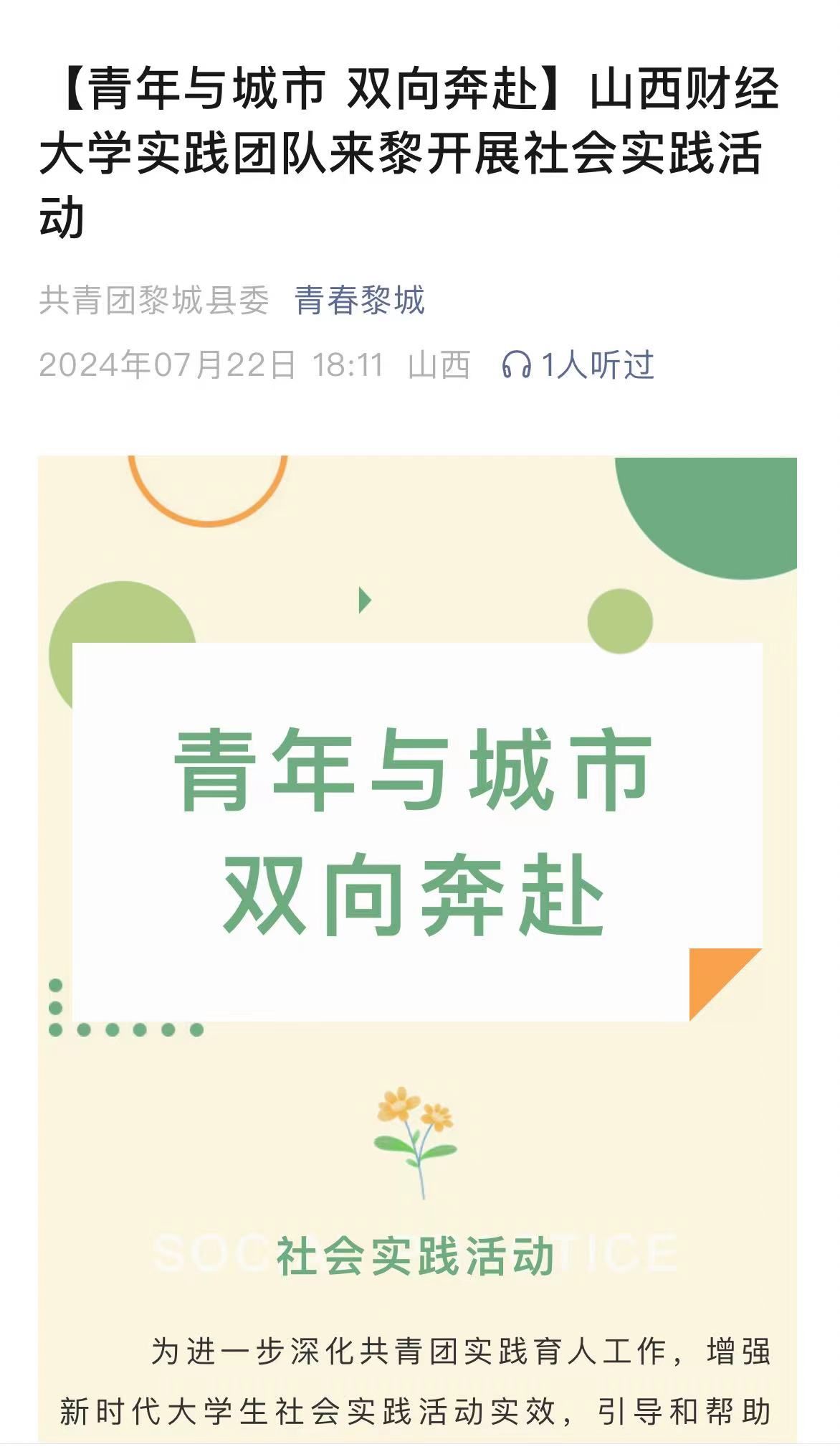 为进一步深化共青团实践育人工作,增强新时代大学生社会实践活动实效,引导和帮助青年学生走进基层、感知基层,在社会课堂中受教育、长才干、作贡献,近日,团县委助力成人视频