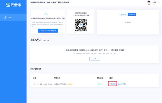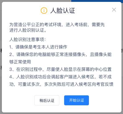 a.      考试开始时,考生需要点击“人脸识别认证”按钮进入,需要允许获取摄像头权限