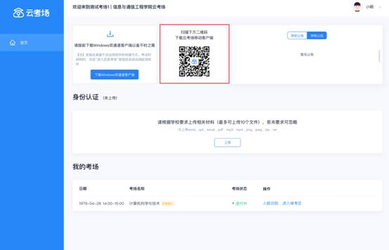 e.      若当考试要求使用双摄像头进行面试时,考生需要打开云考场移动端扫描该页面提供的二维码加入第二摄像头。考生须将手机屏幕锁定设置成“永不”,避免考试期间因手机锁屏造成第二摄像头无法提供视频画面的情况