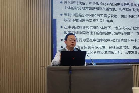 中央财经大学财政税务学院童健老师做了“地方政府多元目标治理与城市绿色转型长效机制建设”的专题分享。地方政府往往在多元目标协同治理过程中以上一级政府经济绩效目标为核心,这就造成地方政府在经济增长锦标赛下短期经济行为动机的出现。童老师从地方政府多元目标治理视角研究低碳城市试点政策的减排效果,以低碳城市试点政策为准自然实验,研究地方政府多元目标协同与掣肘情形下政策实施效果的差异性,并得到了一系列的结论与政策建议,具有非常重要的实际意义。