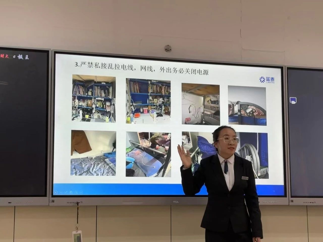 活动邀请公寓管理王老师进行安全教育宣讲。王老师结合近年来全国范围内发生的多起校园火灾案例,深入浅出地讲解了火灾的成因,预防措施以及火灾发生时的自救方法。此外,她还特别提醒大家注意用电安全,不要在宿舍使用大功率电器,不要私拉乱接电线,避免因超负荷用电引发火灾。